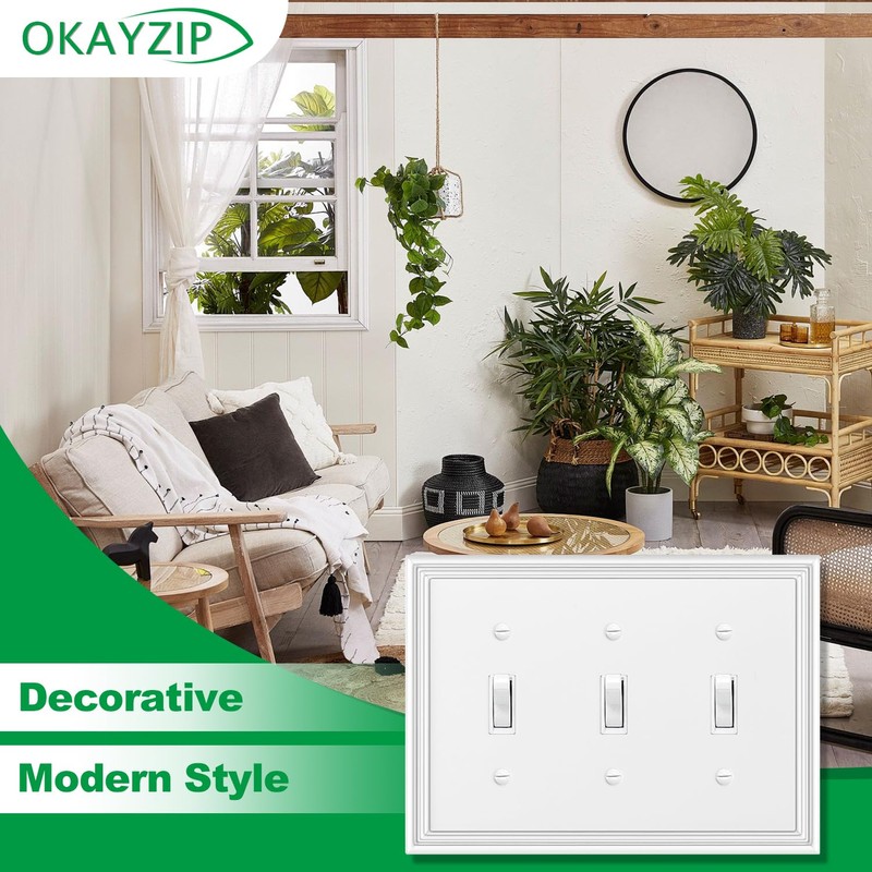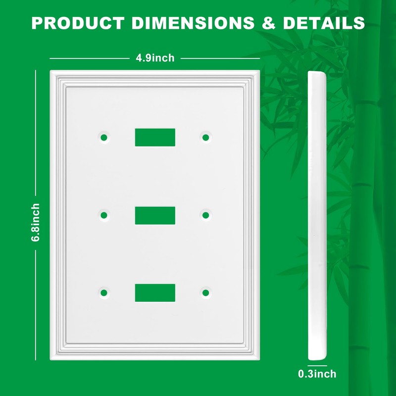 - Modern Roman Column Border: Our triple toggle light switch covers feature a matte white finish and the latest modern Roman Column Border design, matches perfectly with all styles of home decor. Let's transform our homes starting with a small light switch