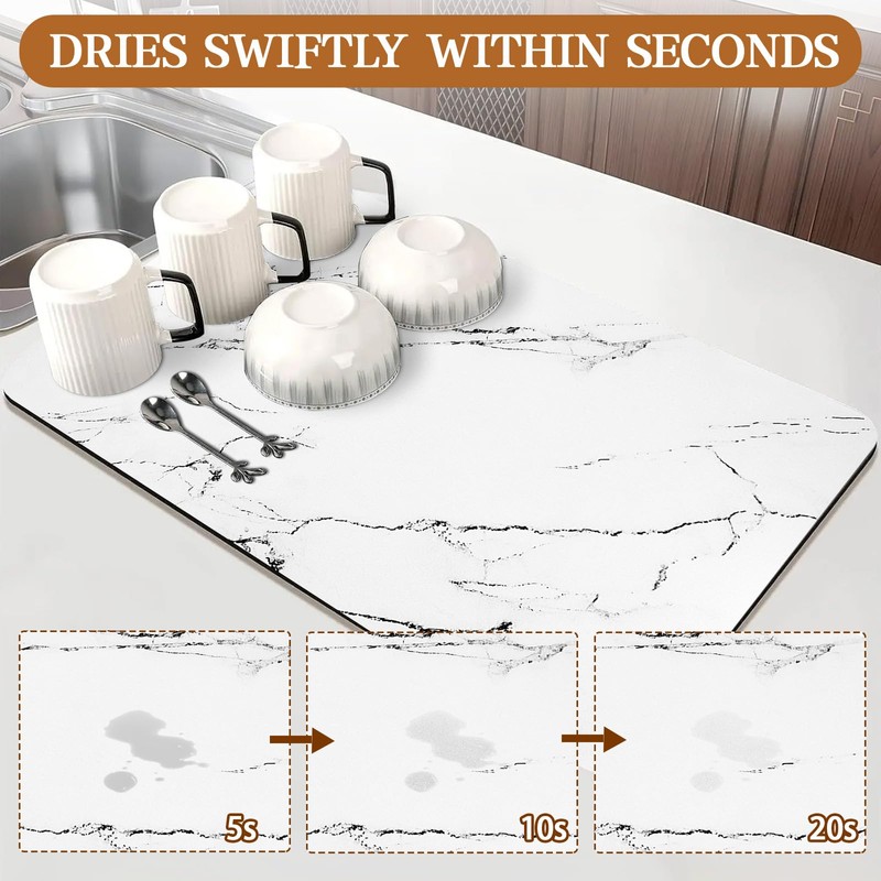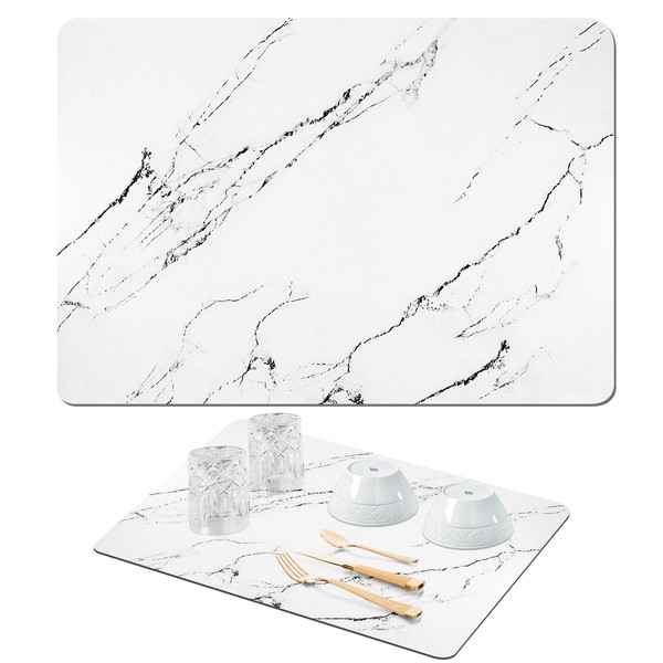 - 【White Drying Mat】: The size of White dish drying pad is 24"x16", The mat is soft and absorbent, Can hold large pots, pans, and dishes, Always keep countertops clean and tidy. White Marble pattern are perfect for kitchen counters and bathroom countertops.