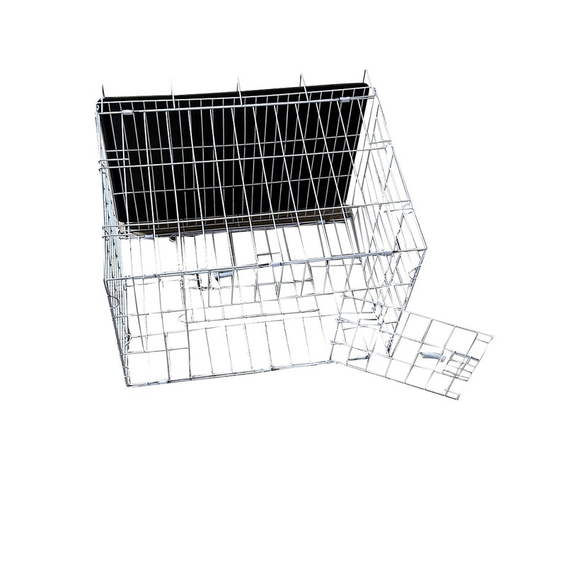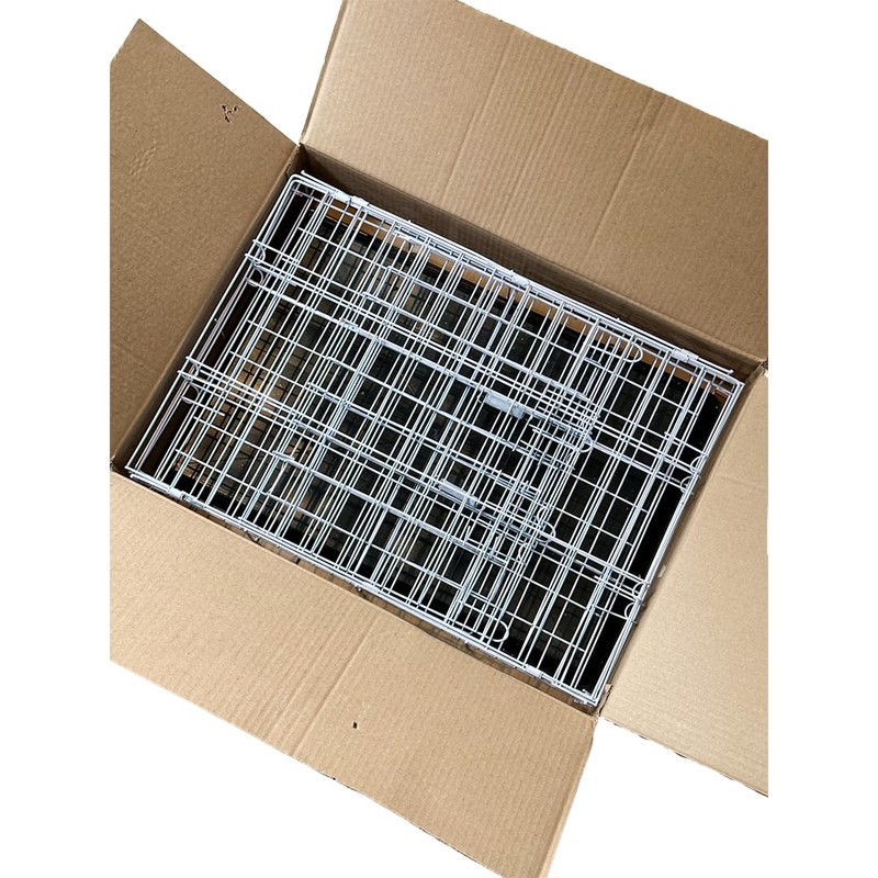 - The crate is constructed from metal wire, making it sturdy and durable.
