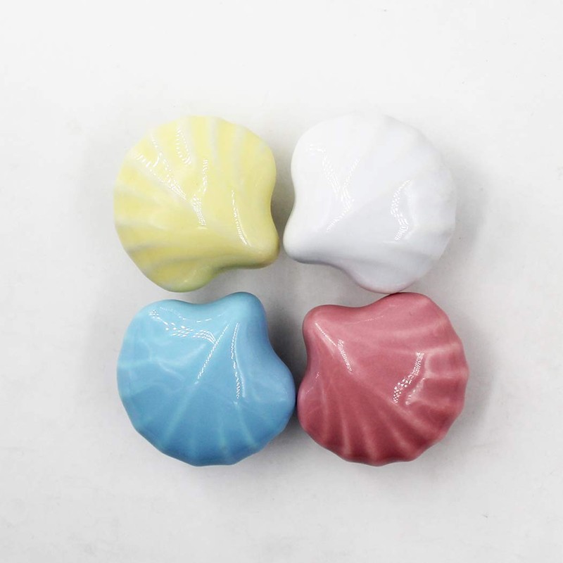White Drawer Knob Ceramic Cabinet Knobs Kids Room Handle Pull Shell Shape for Dresser Drawers (Pack of 8 Screws Included)