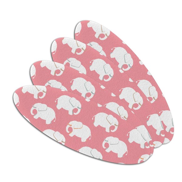 White Elephant Pattern Pink Double-Sided Oval Nail File Emery Board Set 4 Pack