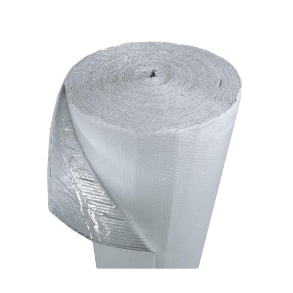 Two layers of polyethylene industrialized air bubbles bonded between two layers of highly reflective metalized aluminum/white polyester film. Industrialized strength, lightweight yet durable insulation designed to hold staples without tearing. Does not compress, collapse or disintegrate. Reflects 97% of radiant heat, emits less than 3% of heat, Class 1 / Class A fire rated radiant barrier that has passed the ASTM E84 test & ASTM E2599. Non-toxic, non-carcinogenic, fiber-free, safe to handle and does not require protective clothing or respirators to install. Easy to install and maintenance free, cuts easily with utility knife or scissors and installs easier than fiberglass. Simply staple, nail or glue into place! No mess, and no itchy fibers!Waterproof, Not affected by moisture or humidity. Inhibits condensation. WATERPROOF AND WEATHERPROOF. Non-flammable, flame retardant Saves energy by reducing the stress on heating and cooling systems, keeping your home warmer in the winter, and cooler in the summer. It can reduce utility bills substantially all year round.