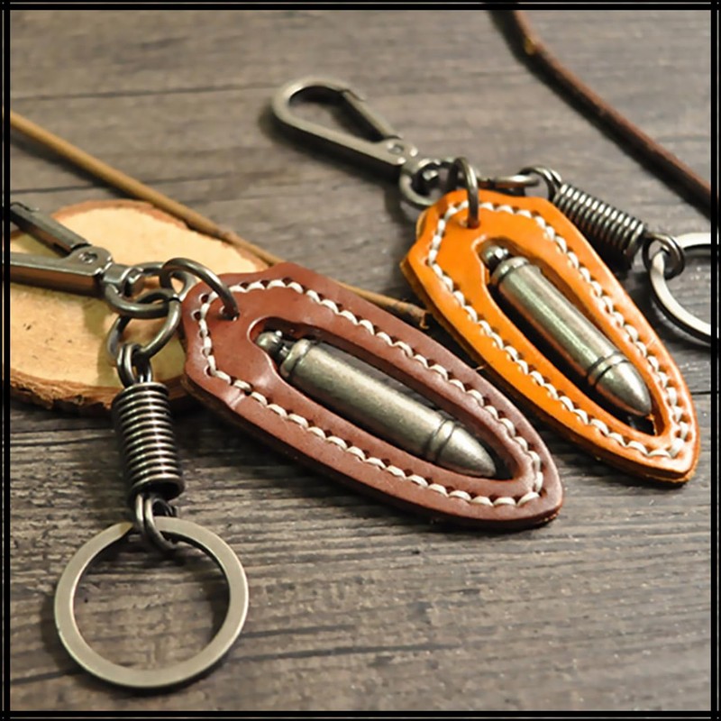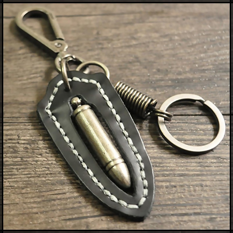 White Fang AZ171 Keychain, Keyring, Leather, Bullet, Cool, Retro Charm, Men's, Women's,, Black