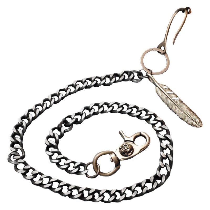 White Fang AZ177 Men's Retro Antique Feather Wallet Chain Fall Proof Key Ring, Silver