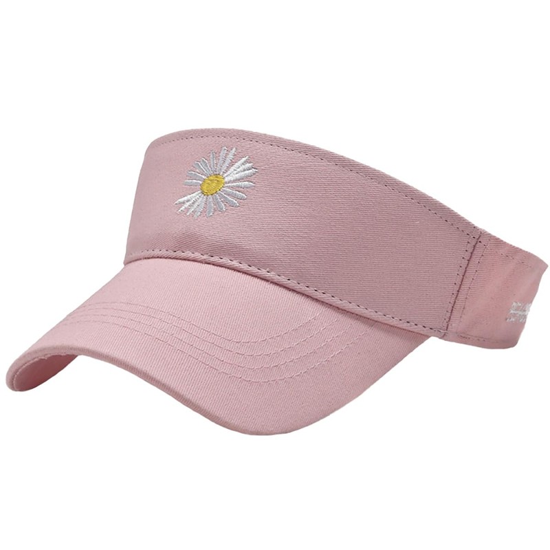 White Fang CZA048 Women's Sun Visor, Flower Embroidery, Trend Hat, Summer Cap, UV Protection, Cute,, Pink, Free size