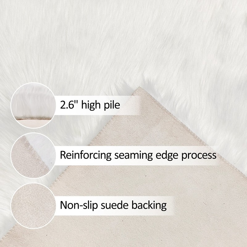 - Multi Occasions Faux Rug: This faux sheepskin rug is white in design and has a warm and luxurious feel, it can be an suitable decoration for many areas of the home, such as living room, bedroom, nursery, fireplace, and ideal for holiday decorations