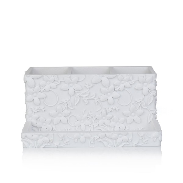 WHITE FLORAL BATHROOM TRAY for COUNTERTOP organizer for bathroom