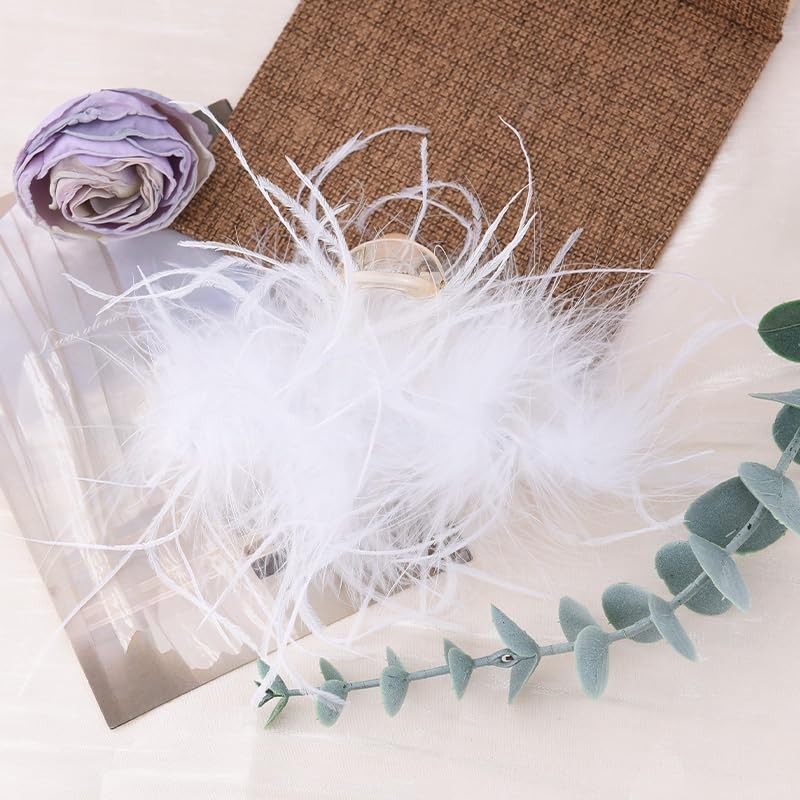 - High Quality of Feather Hair Claw Clips: The ostrich feather hair clip length 4.3in, feathers are lengthened, making them less prone to shedding, the white claw clip is perfect size to securely hold a variety of hair types, soft feather will add more charming and elegant for your hair, fluffy feathers clips for hair, feather headpiece for women girls