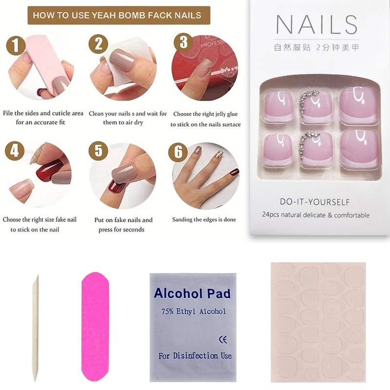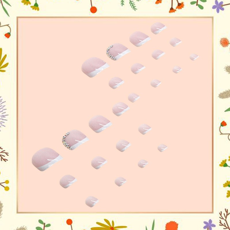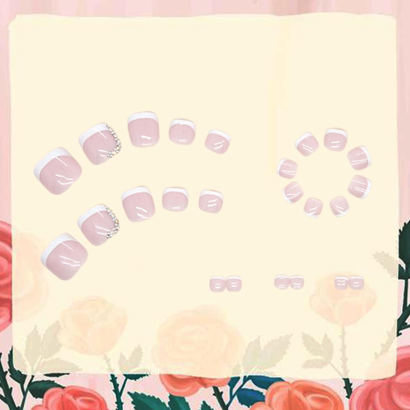 - 【Package Contents】You will receive 24pcs french tips acrylic press on toenails, 24pcs double-sided adhesive jelly glue stickers, a nail file and a wooden stick for removing toe nail tips. Easy to make a fashion false toenails salon.