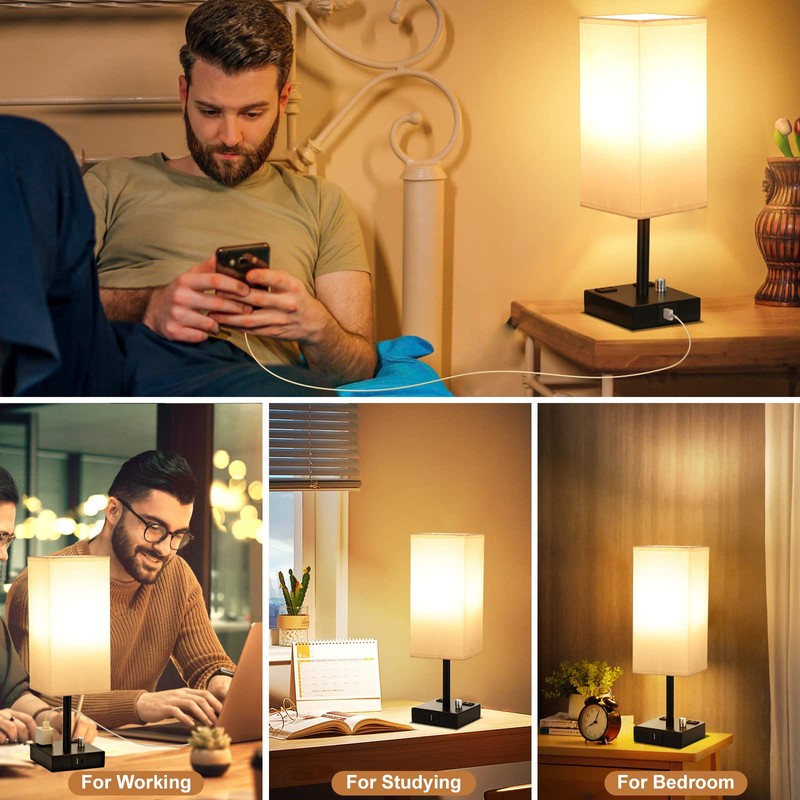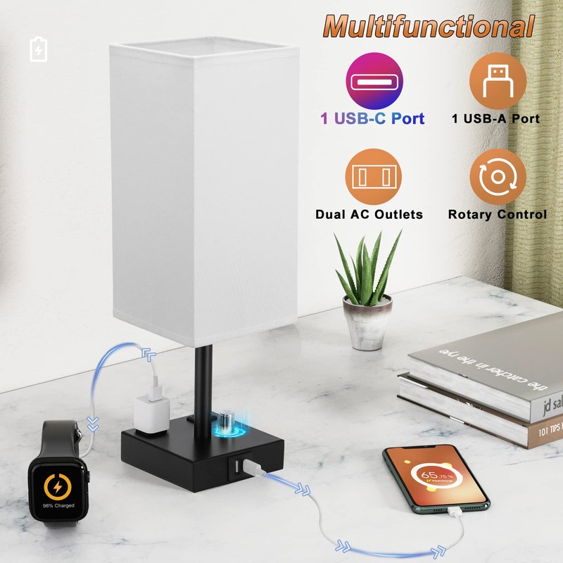- Bedside Lamp with USB Fast Charging& AC Outlet - Our modern table lamp for bedroom is equipped with USB-C port& USB-A port(5V/2A)and dual AC Outlets. If you need to charge your phone while sleeping, your laptop at work, or your Alexa on daily use. Our table lamp with usb port and outlet will be a convenient choose!