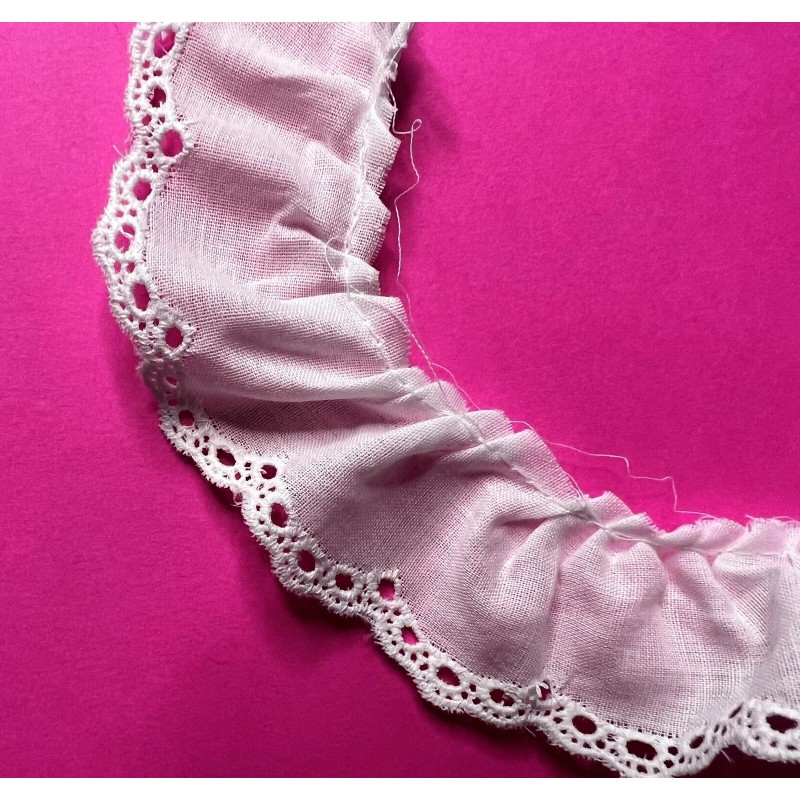 White cotton gathered eyelet lace. $4 total to ship any amount.