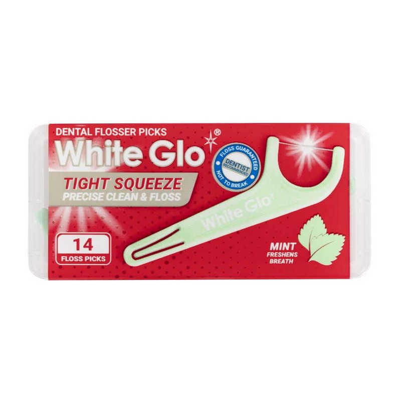 White Glo Tight Squeeze Floss Picks Mint gives a precise clean and floss, helping to reduce plaque build-up and tooth decay.