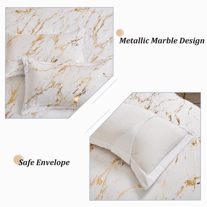 - 【MARBLE METALLIC GLITTER DESIGN】Classic marble texture mixed with a shiny gold metallic foil pattern on a white background gives you perfect visual feast, bringing your bedroom a luxurious and warm happiness.