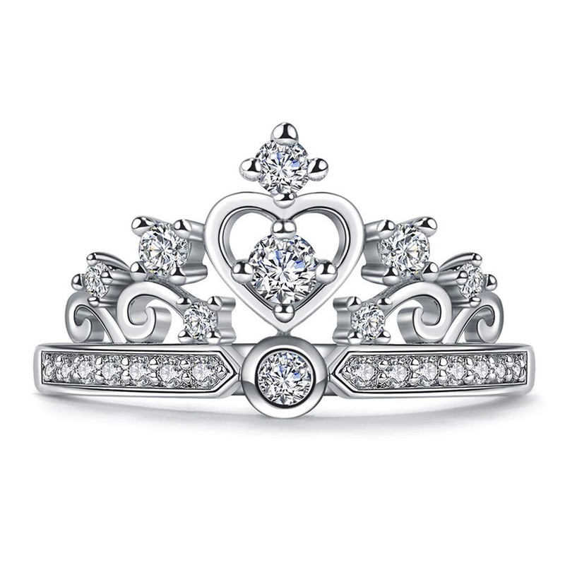 White Gold Plated Simple Princess Crown with Cubic Zircon Crystal Wedding Engagement Ring Fashion Jewelry (7)