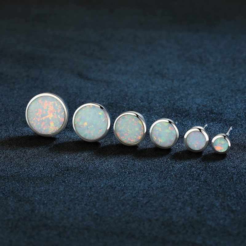 White Gold Plated Sterling Silver Opal Stud Earrings 3mm-8mm Options, Simulated Opal Dot Studs Hypoallergenic Jewellery (6mm, white)