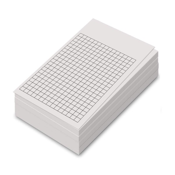 - White Grid Vertical Index Cards, double-sided and measures at 3” X 5” Inches