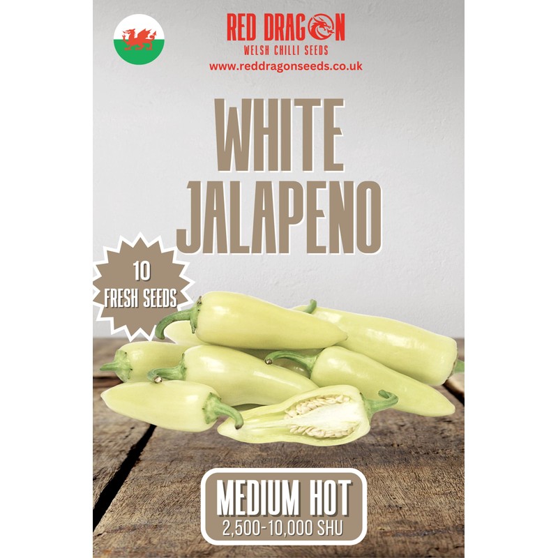 - 🌶️One of the best tasting and looking Jalapenos, this white vareity is quite rare. They are quite sweet to the taste with a medium heat. Pods start very light green to a cream white then after some time start to ripen to a deep red with the top starting orange normally.