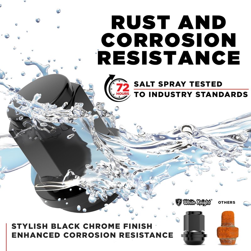White Knight M12x1.5 Lug Nuts for Select Honda and Acura, Factory Style Black Chrome Radius Seat with Washer - 1907WRBK-20AM (20 Pack)