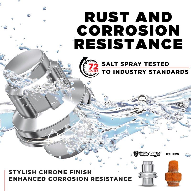 - Durable construction by Cold forged carbon steel and tested to industry standards. Stylish chrome or black chrome finish. The anti-theft spline design prevent theft on wheels.