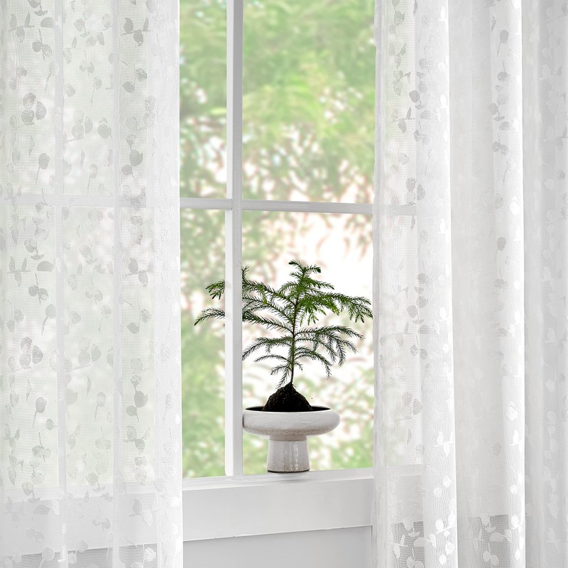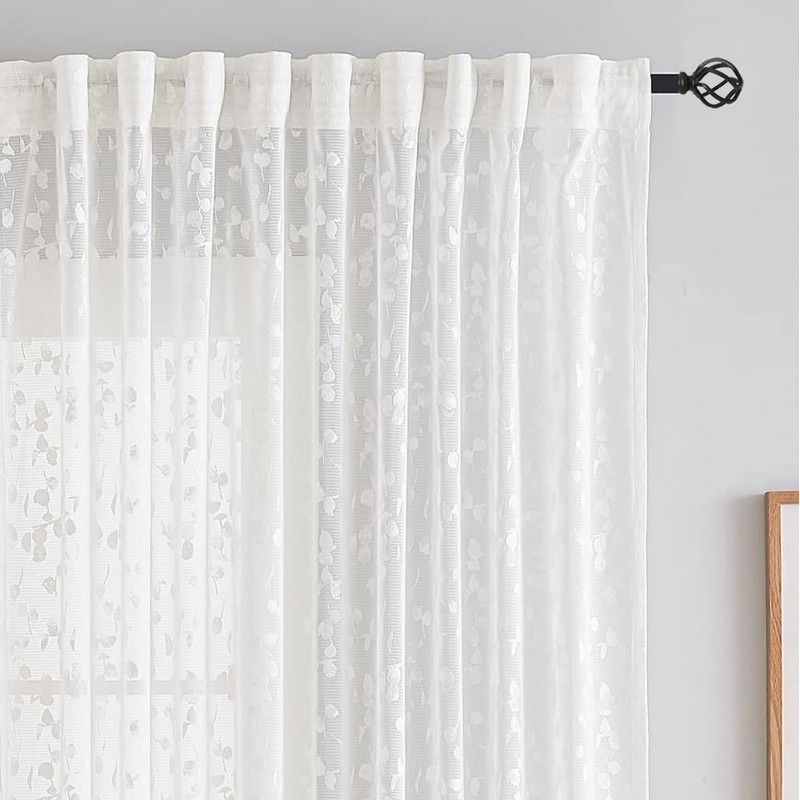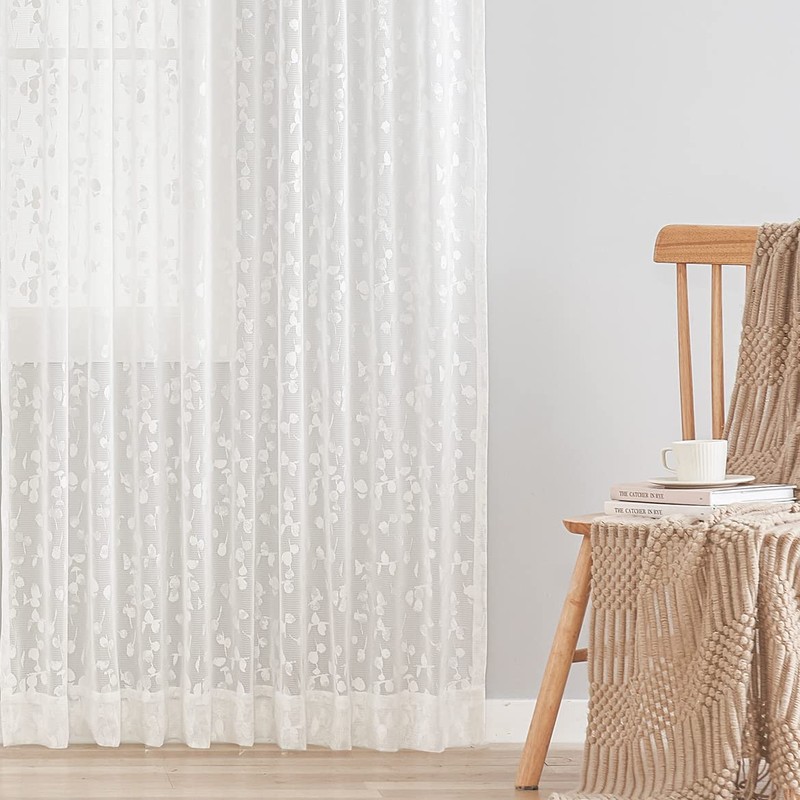 - UNIQUE DESIGN: The lace sheer curtain is designed with miniature simulated leaf pattern of the same color as the curtain, and which is full of decoration, suitable for bedrooms, living rooms and other places
