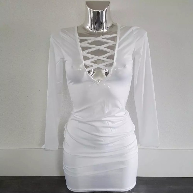 White Laced Up Front Long Sleeve Mini