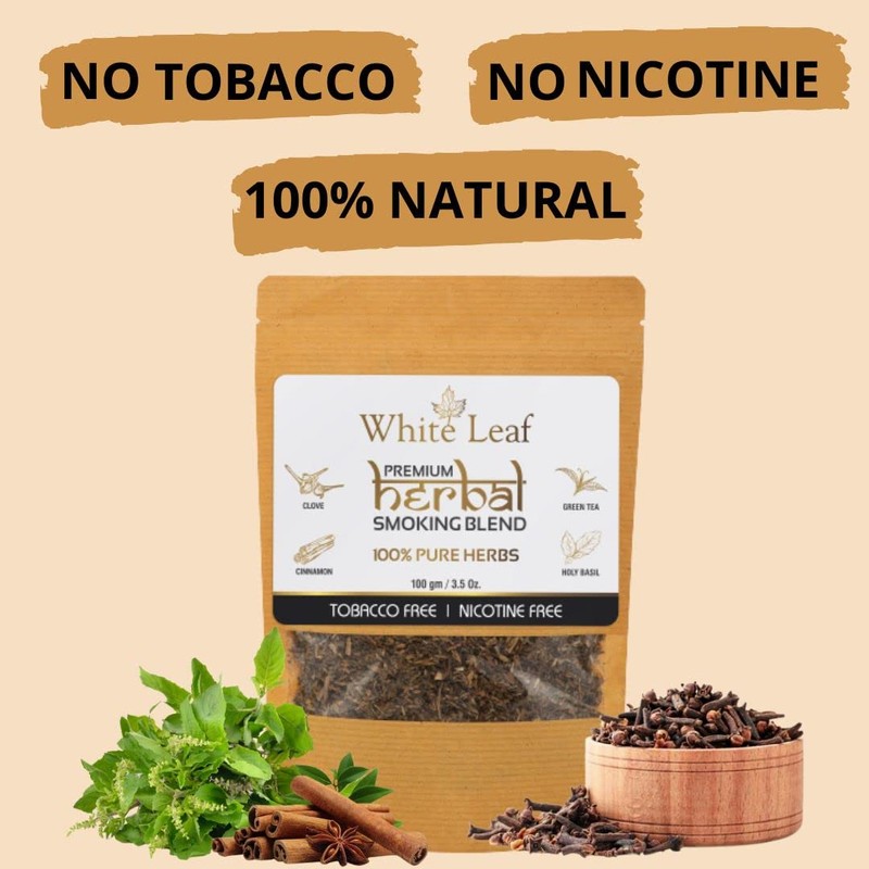 White Leaf White Leaf 100% Natural Flavour Herbal Smoking Blend 1 Pack (3.52 Oz/ 100 gm) - Tobacco & Nicotine Free Smoking Mixture