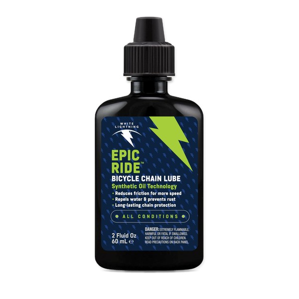 White Lightning Epic Ride All Conditions Light Bicycle Chain Lube, 2oz Drip Squeeze Bottle