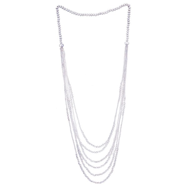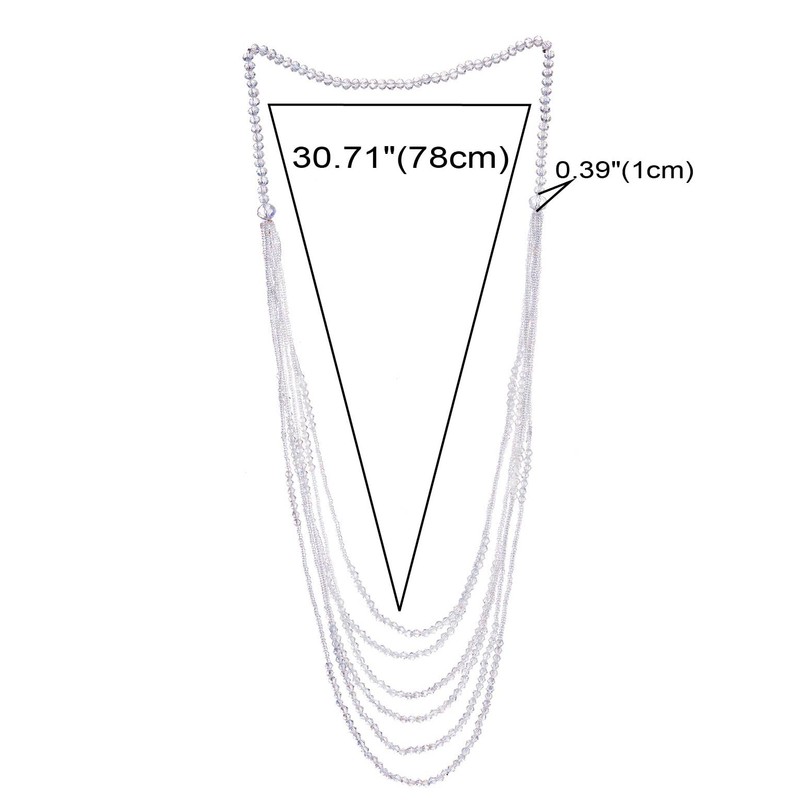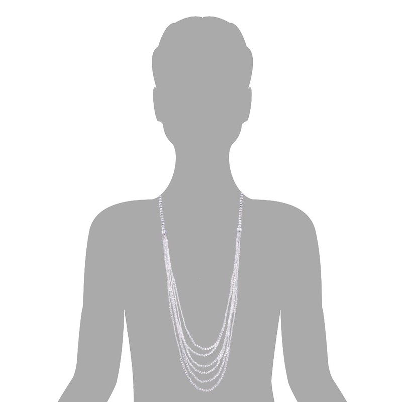 • White Long Statement Necklace Multi-Strand Waterfall Chains with Crystal Beads Charms Pendant