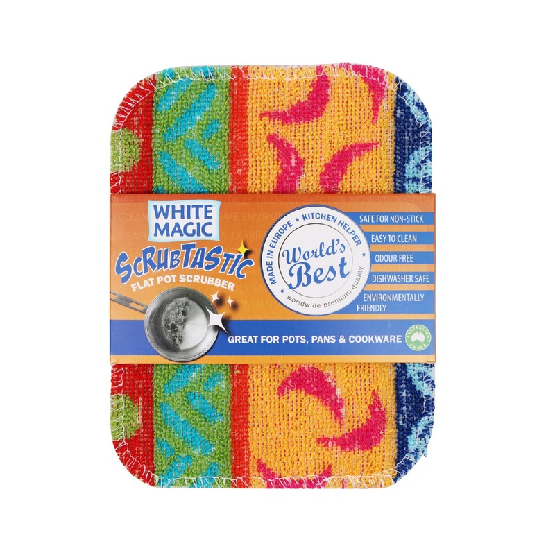 White Magic Scrubtastic Flat Pot Scrubber, Made in Europe, Great for Pans, pots and cookware, Safe for Non-Stick, 12.5 x 16.5cm
