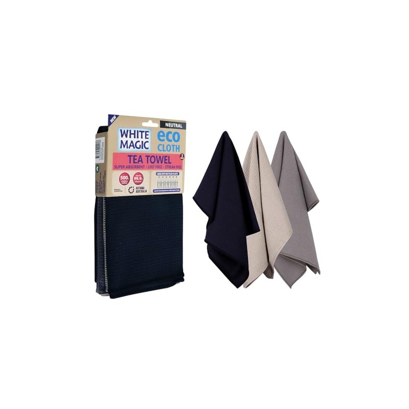 White Magic Tea Towel 3-Pack, Neutral - Superior Absorbency, Versatile Multi-Purpose Use, Durable Construction, Stylish Designs, Quick-Drying & Lint-Free, Easy Care, Kitchen Essential, 70x50cm