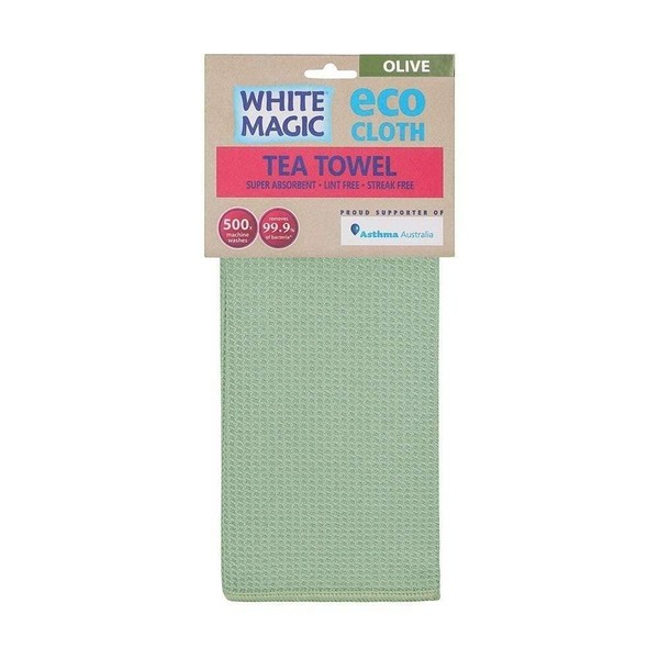 White Magic Tea Towel Single Pack, Olive – Recycled Plastic Ultra Absorbent Microfibre, 70x50cm, Lint-Free, Quick-Drying, Durable & Stylish Kitchen Towel, Multi-Purpose Use, Easy Care
