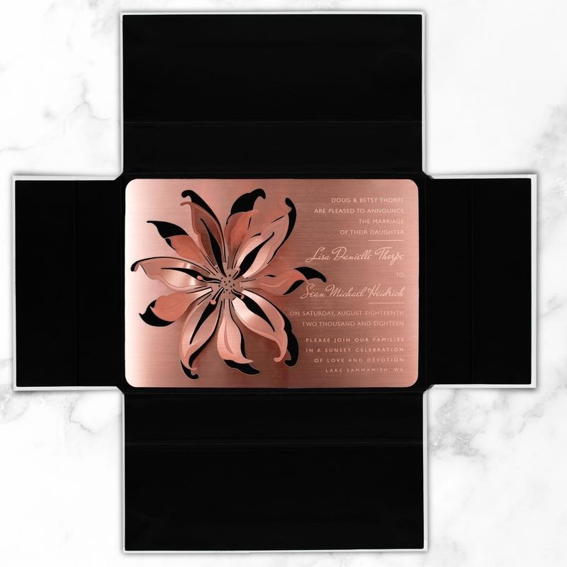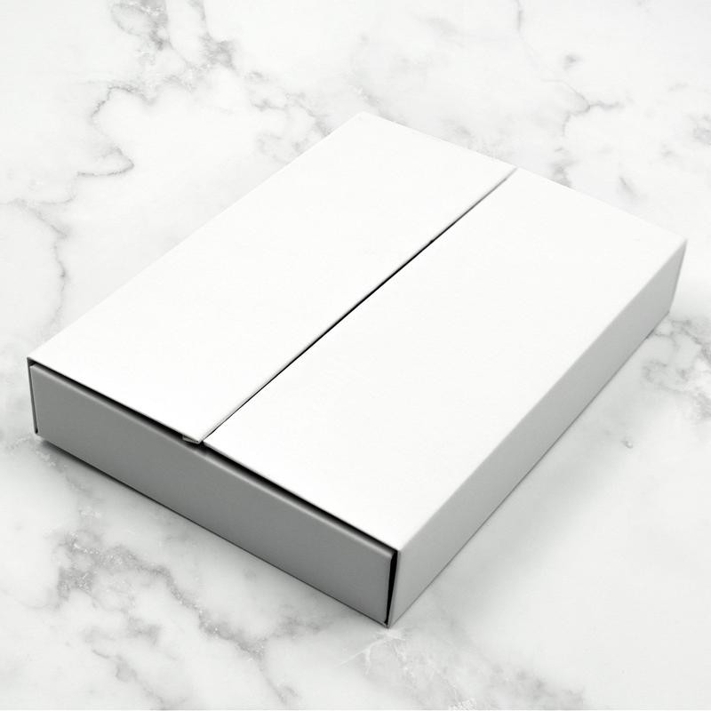 Presentation counts, and we’ve got you covered! Want to make a “grand entrance” with your invitation, card, or gift? Our unique magnetic invitation box makes a statement. The flaps snap shut with magnets and open fully to reveal what’s inside. The outside of the box is white - beautiful on its own, or decorate for the occasion! The inside of the box is black, making our metal products truly stand out!