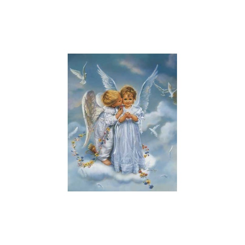 Two angelic children float on a cloud, whispering secrets only they can hear.
