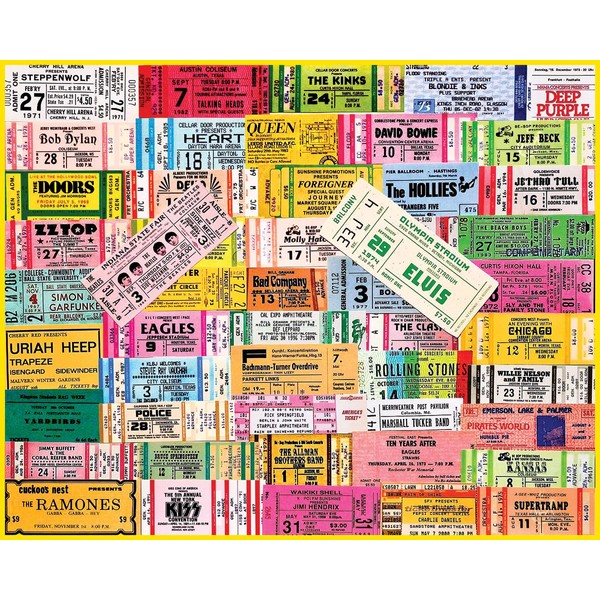 - NOSTALGIC APPEAL: The "Concert Tickets" puzzle evokes a sense of nostalgia, as puzzlers reminisce about the influential artists & memorable concerts represented by the tickets. It's a perfect gift for adults, children, grandparents & friends.