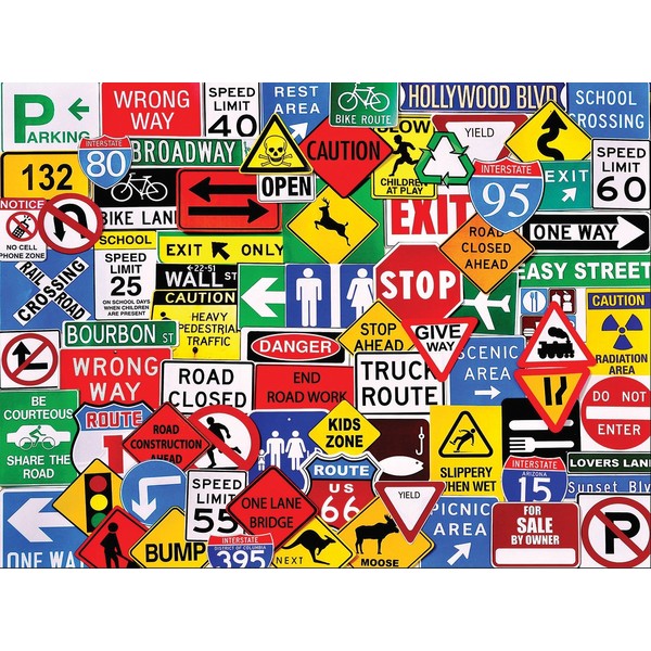 - SAFETY & FUN FIRST: Have fun taking a spin down Broadway onto Bourbon Street with the White Mountain Puzzles – Road Signs, a colorful collage of road signs assembled in a 500-piece jigsaw puzzle.
