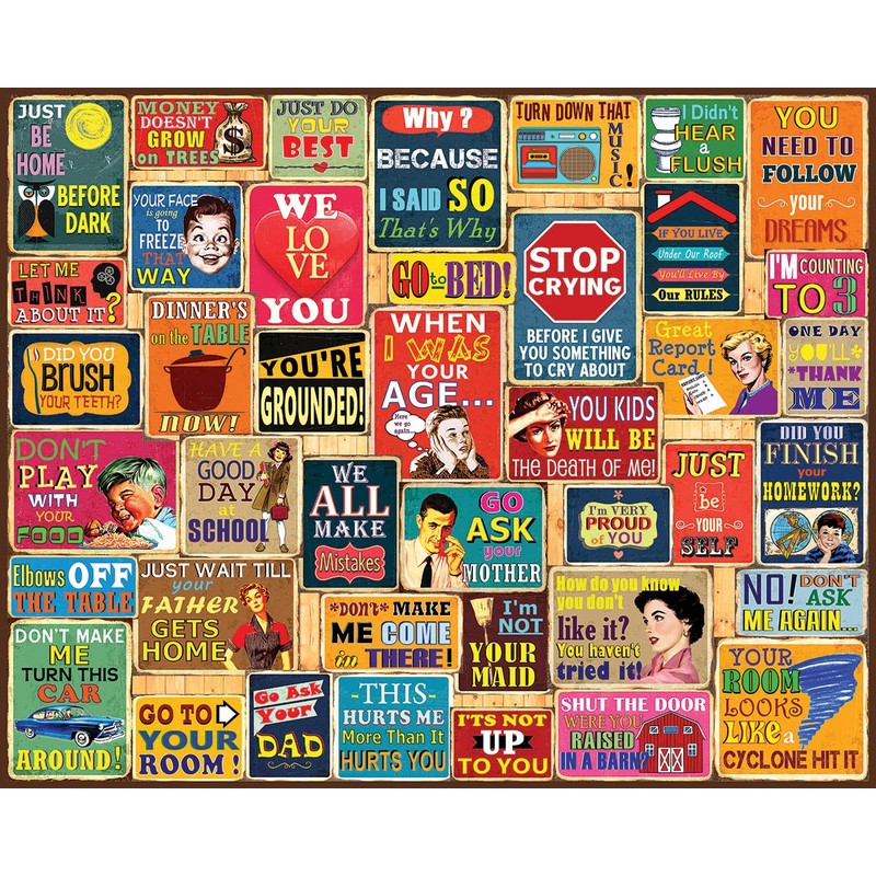 White Mountain Things Parents Say 1000 Piece Jigsaw Puzzle Fun Collage Puzzles for Adults and Family