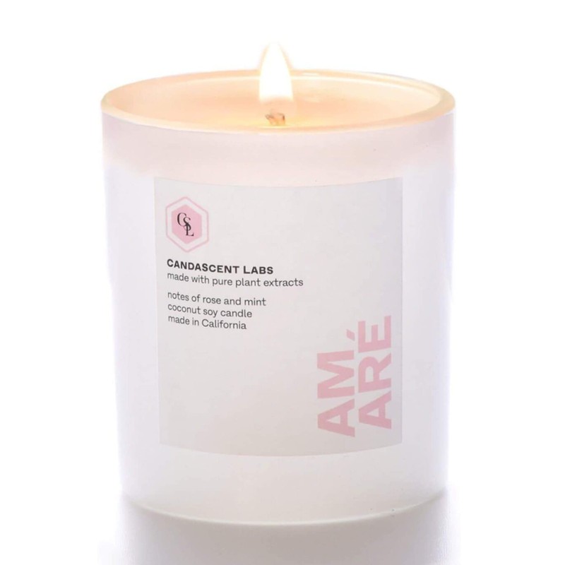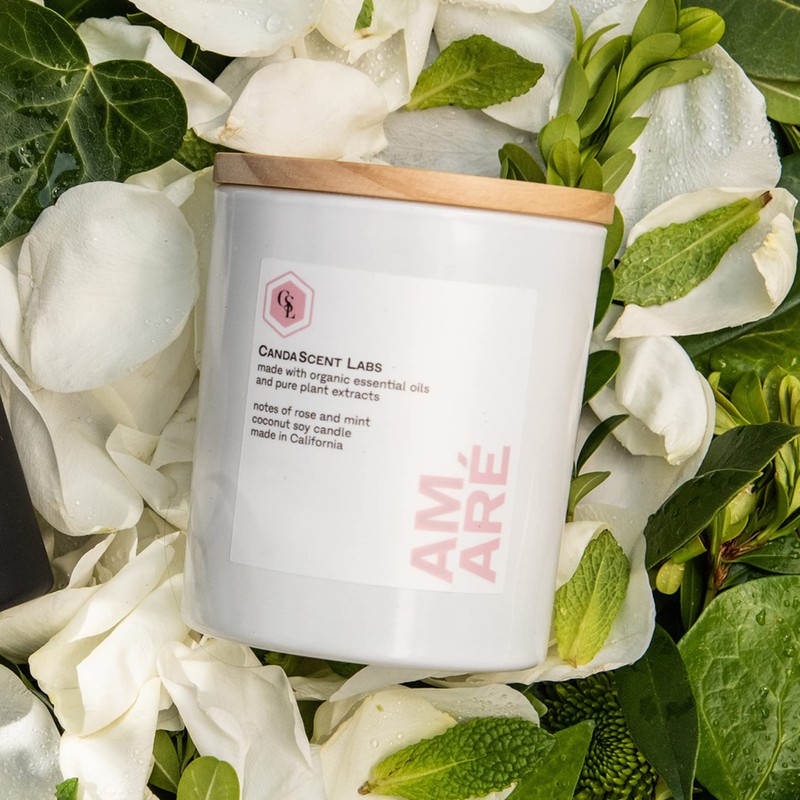 White Organic Rose & Mint Amaré CandaScent Labs Wellness Candle: Anti-inflammatory, Antioxidant, Calming and Uplifting Properties in The 100% Botanical Ingredients: Luxurious and Synthetic Free