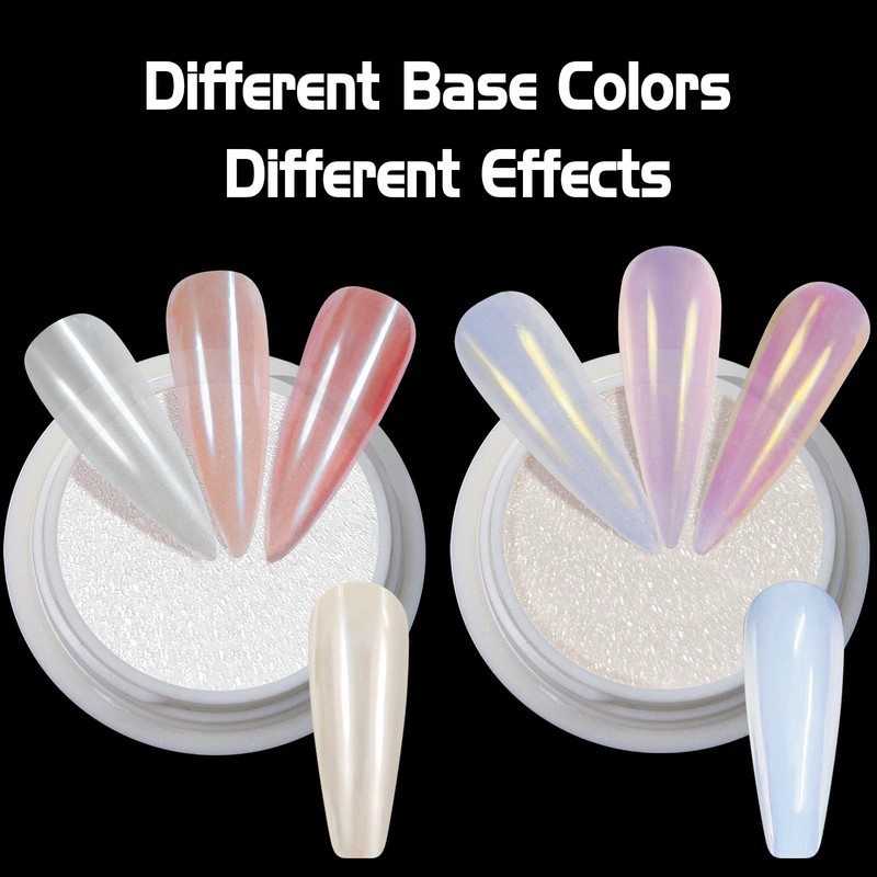 - White Pearl Nail Powder: GJNL ice transparent aurora nail powder is brighter and shiny, chrome powder has its own glitter, bright and transparent high glossy effect. The powerful pearl effect will show a slight flashing blue light visual sense with the change of light intensity. Make it shines like pearls in the sea.