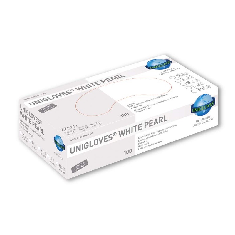 White Pearl Nitrile Disposable Gloves, Powder-Free, Size L (Pack of 100)