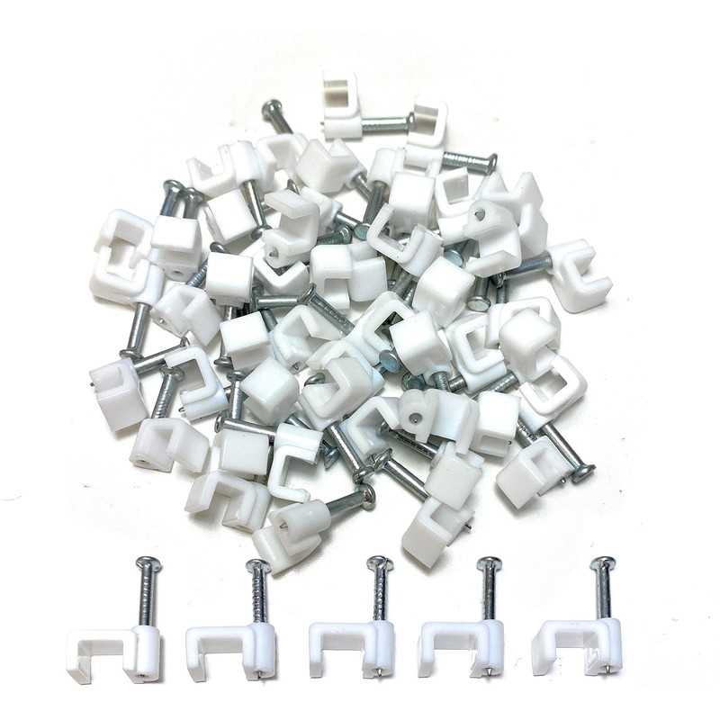 White Plastic Flat Electrical Wire Cable Clips TV Phone Internet Lead Fixings 50 Pieces (6mm)
