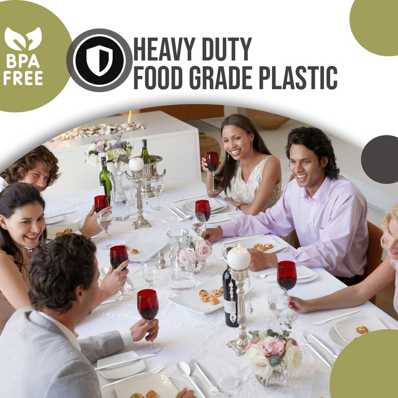 - PREMIUM QUALITY: These disposable silverware heavy duty tableware utensils not only look stunning but are very sturdy. We Are Proud To Say That Our durable fancy plastic silverware set Is Made with Bpa Free Plastic That Is Recyclable Too! It Is The Perfect Holiday and Thanksgiving cutlery - upscale disposable dinnerware