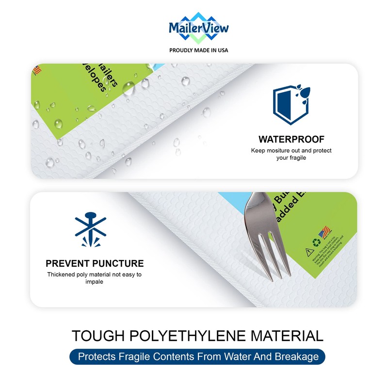 - American-Made: Poly Bubble Mailers in the 8.5x12 inch size are proudly made in the USA.