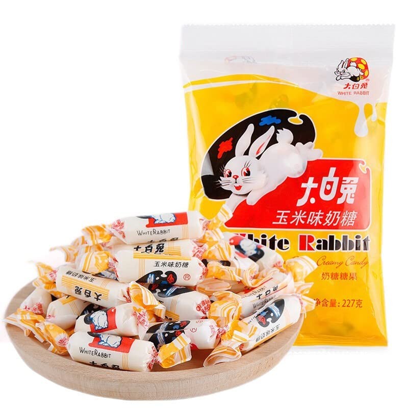 - Product Name: White Rabbit Corn Toffee Net content: 227 grams Shelf life: 540 days Main ingredients: maltose, white sugar, whole milk powder, cream, corn flour, edible glutinous rice paper, etc. Storage method: Please keep in a cool and dry place, avoid direct sunlight Reminder: After the colorful wrapping paper is torn, there is still a thin layer of candy wrapping the candy, which is made of edible glutinous rice, please eat it with confidence.
