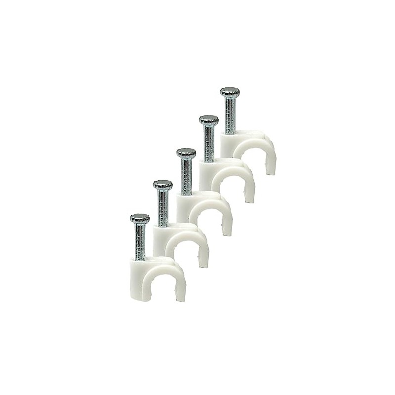 White Round Cable Clips with Fixing Nail K-Type 50pcs (5mm)