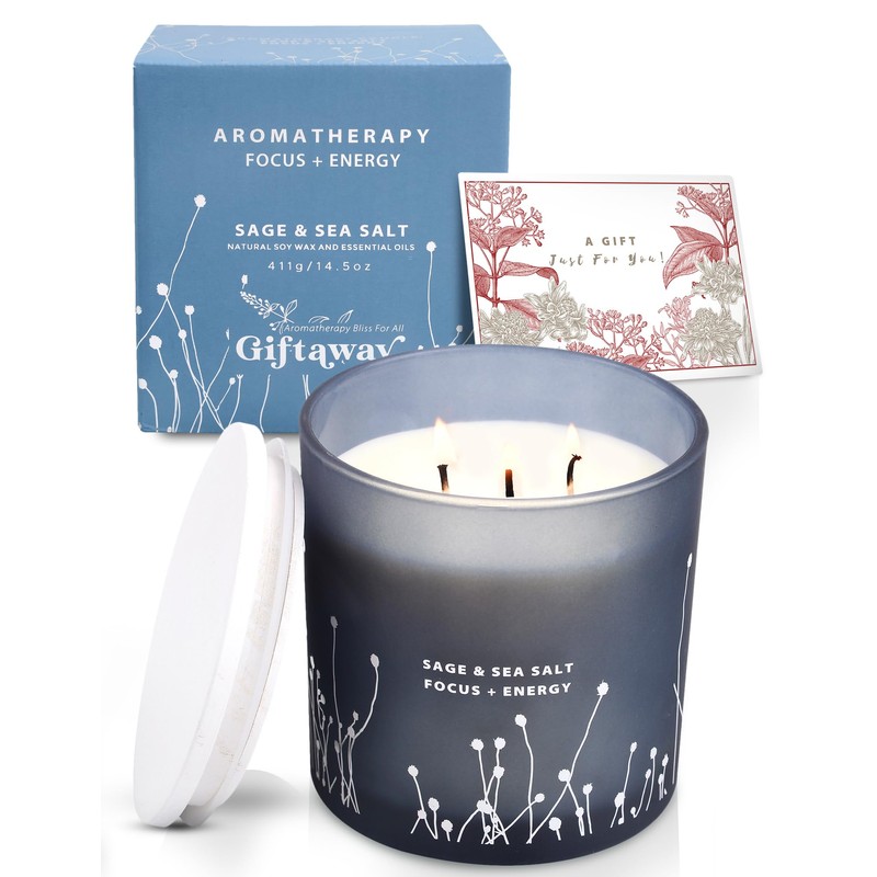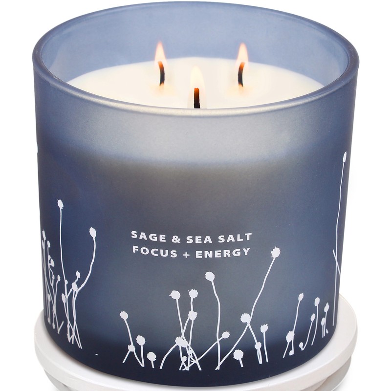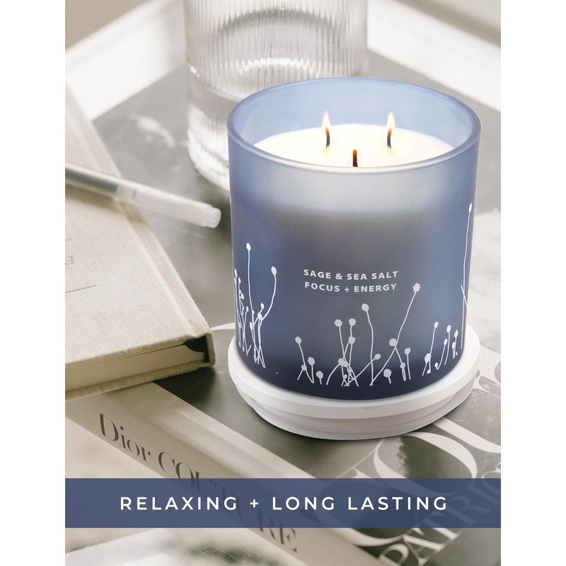 - 🌿 Natural Soy Wax Candle: Indulge in the refreshing scent of our 14.5 Oz Sage and Sea Salt 3-wick candle, skillfully crafted by blending the herbaceous and woody aroma of white sage with a hint of fresh sea salt and subtle notes of eucalyptus, jasmine, and cedarwood. This uplifting fragrance promotes focus and energy, while cleansing your space and awakening your senses with each delightful burn.