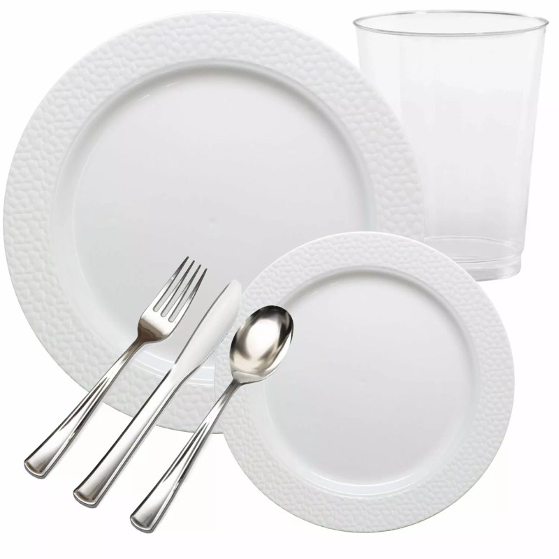 Elegant china like dinner plates which are disposable. It is the most convenient element when preparing for an event. Your table will have the lavish appearance of real china at a significant lower cost. These plates will go a long way, whether you're preparing for a dinner, party, or special event. Each package contains 10 elegant plates. You can choose to dispose or reuse these plates for another occasion. They are made of excellent quality and can be cleaned and reused for future events.