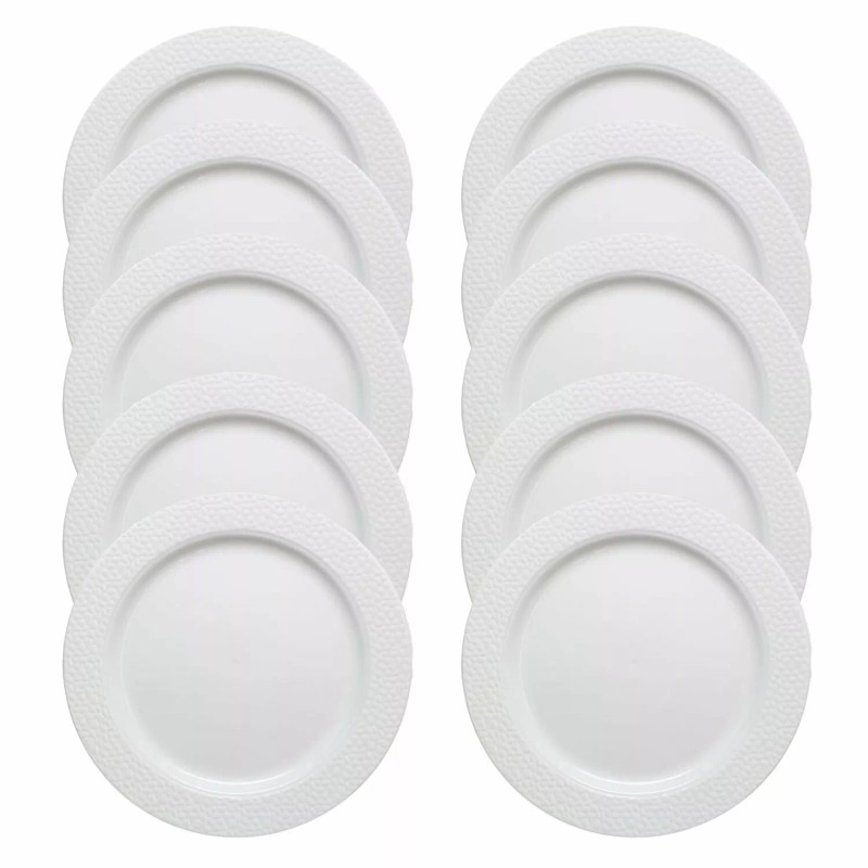 White Salad Dessert Plates White 7.25" For All Occasions 10 Count Hammered Collection