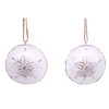- Set of 2 Christmas Ornaments Featuring White Sand Dollar with a Tan Flower Design in the Center