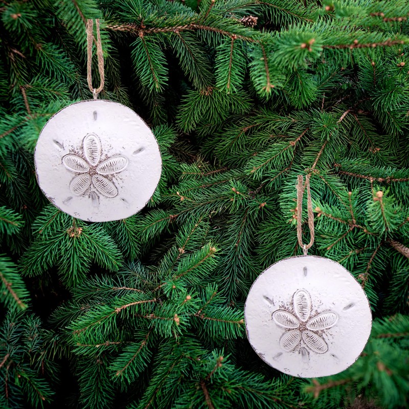 White Sand Dollar Christmas Ornament, Set of 2, Holiday Décor, Nautical Tree Decoration, 3 Inches