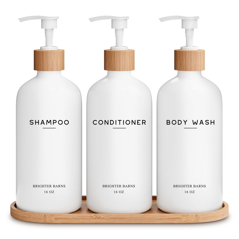 White Shampoo and Conditioner Dispenser Set by Brighter Barns - Shower Dispenser - Shampoo Conditioner Body Wash Dispenser with Pump - Shower Soap Dispenser for Bathroom Decor, Hotel, Airbnb (White)